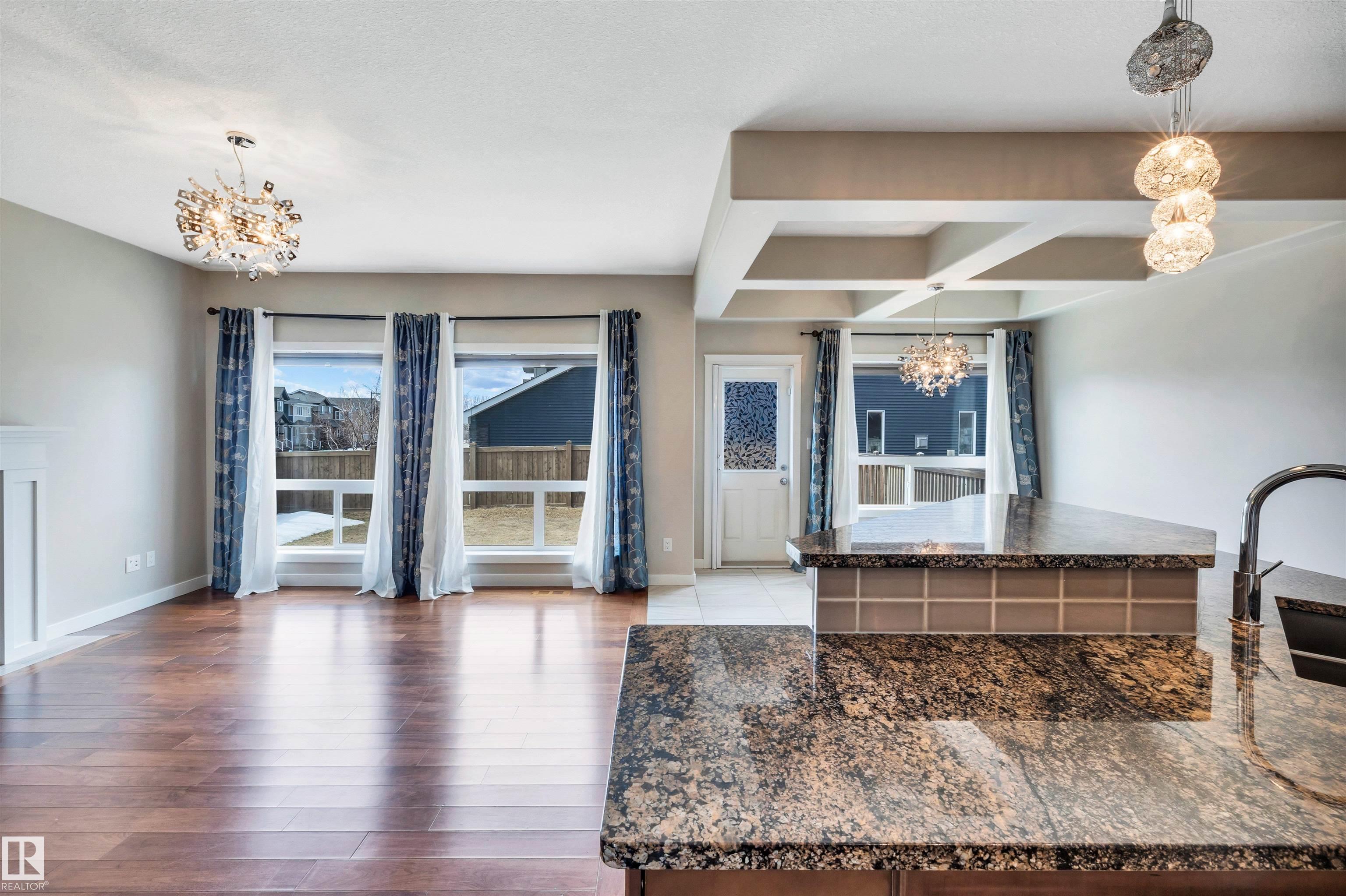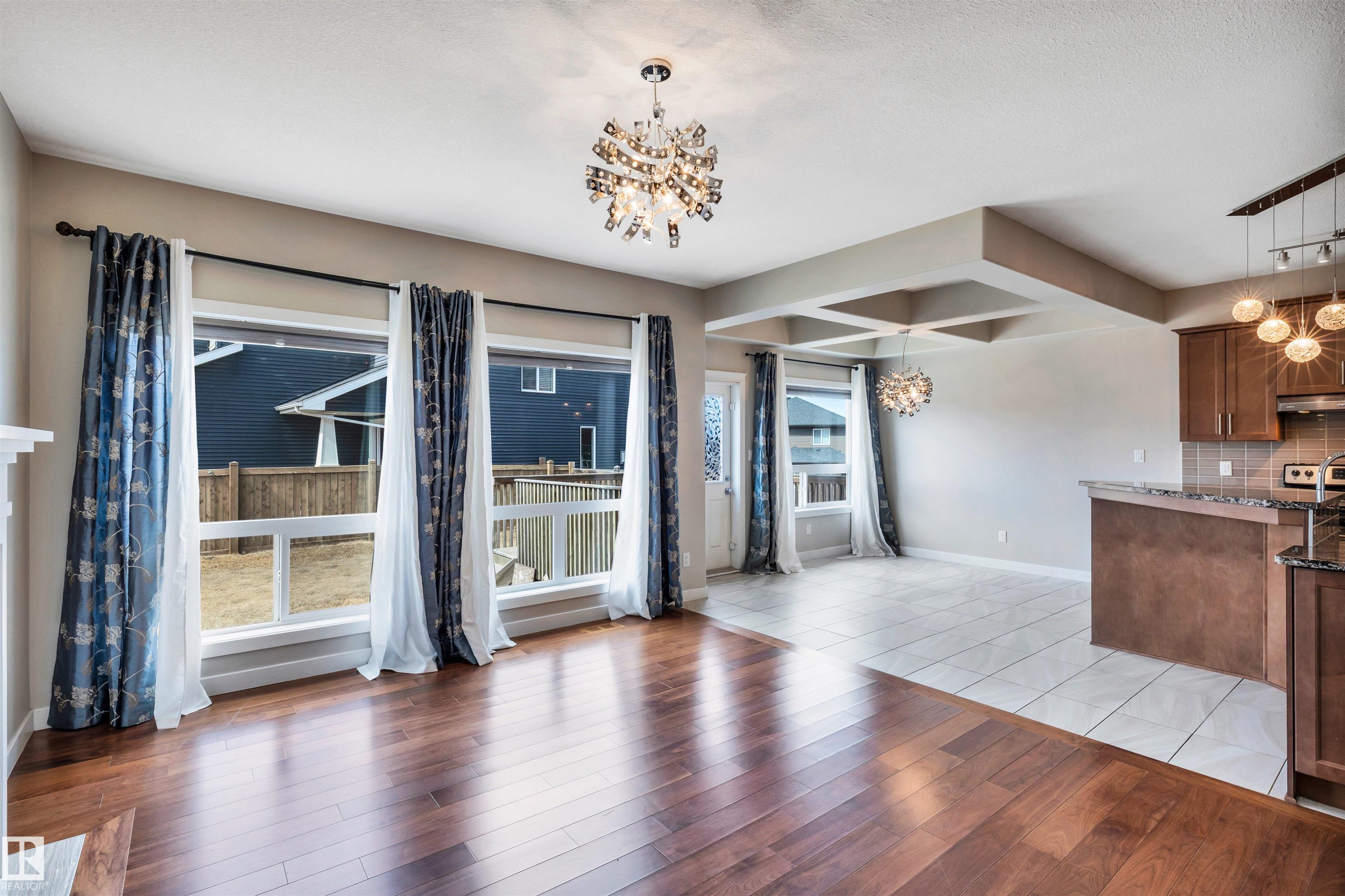 FULLY FINISHED! This wonderful family home has the elevated finishings you want at a price that you can afford. Offering almost 2600 square feet of living space with a modern open concept design, kitchen offering sleek dark cabinetry, thick granite countertops, upgraded stainless appliances, open to the dining area with dramatic coffered ceiling, access to the attached back deck and fenced and landscaped back yard, living room with cozy gas fireplace, completing the main level is a half bath and convenient laundry, iron railings up the stairs to the big bonus room, 3 bedrooms, primary with spa-like ensuite boasting jetted soaker tub and large glass shower, additional full bath completes the upper level. The basement is builder developed with family room, bedroom and full bath. Easy access to all major amenities and connecting routes. Immediate possession is available! MLS®: E4481922 - Walker 2 Storey $624,900